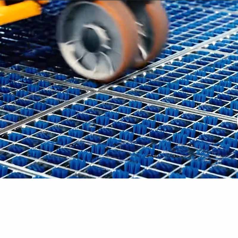 Forklift Wheel Cleaning Brush for reducing dirt and bacteria transported into production facilities by vehicles such as forklifts. Tension-sprung, patented brush strips deliver 24-hour passive protection for food production environments, laboratories and anywhere requiring the utmost cleanliness. Simply fit the system next to exterior doors and entryways — and let the brush strips do all the hard work. we provide 600mm*880mm, 600mm*900mm and 600mm*1000mm.
